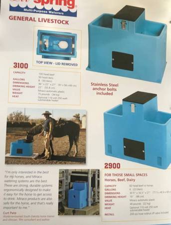 Please call for pricing 320-249-823seven Many different sizes for needs! Heating elements available in 110v or 220v All waters come with stainless concrete anchors