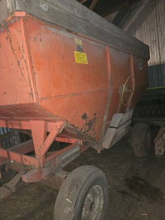 Good old gravity wagon that trails good down the road. Has some surface rust on the outside but nothing deep. Tires do have some weather cracking but all hold the weight of grain down the road fine.