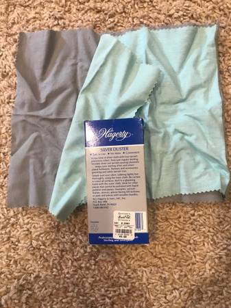 Hagerty brand silver duster cloth, professionally cleanes and polishes sterling and silver plate, two piece cloth set, like new!