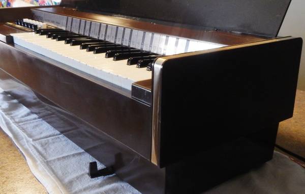 Model 468 Table Model from around the 1960’s. WORKS GREAT, is clean, has good sound, good power cord, the cover is good. Shows it's age, but sounds pretty dang good! This is a fun old tabletop organ that has accompanying major and minor chords, all the chords work, and all the keys work! A great vintage heirloom organ from the 60's era.